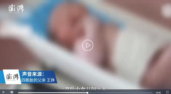 國慶當(dāng)日90后媽媽生下四胞胎全網(wǎng)幫忙起名(圖片來自澎湃視頻截圖,下同)
