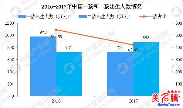 國(guó)家統(tǒng)計(jì)局?jǐn)?shù)據(jù)顯示,2017年全國(guó)一孩出生人數(shù)724萬(wàn)人,比2016年減少249萬(wàn)人。二孩出生人數(shù)883萬(wàn)人,比2016年增加162萬(wàn)。2016年一孩出生人數(shù)占比54.5%,2017年則以二孩為主,二孩出生人數(shù)占比高達(dá)51.2%。