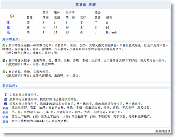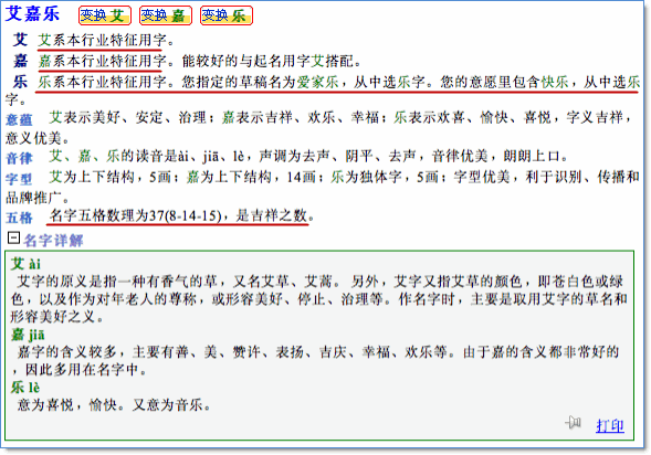 2、綜合分析輸入的起名信息,起出滿足條件的名字,如下是其中的一個候選名字